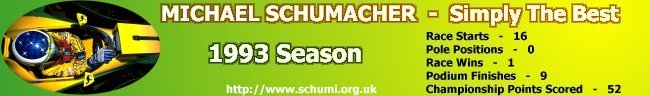 1993 Michaels team mate for the '93 season was Riccardo Patrese, He clocked up 6 retirements & Michael 7, But with 1 race win & 9 podiums Michael finished with 52 points against Patrese's 20. This was a year of learning and development, The 1993 car was not up to it Yet, Michael managed to extract the utmost out of it, something he proved to be extremely good at